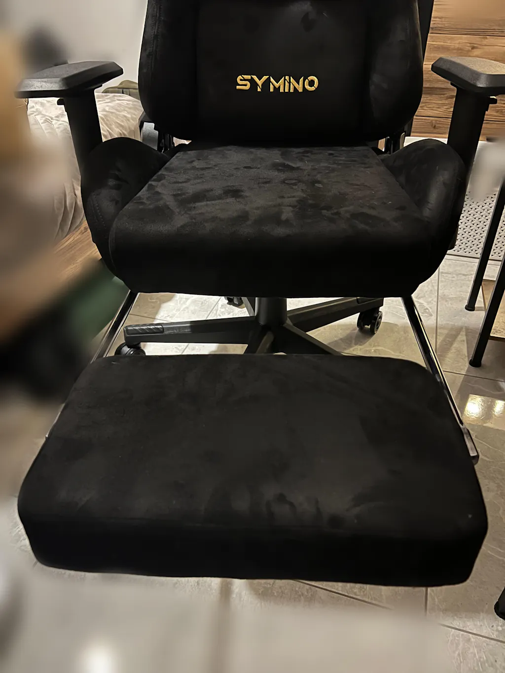 SYMINO Breathable Gaming Chair with Footrest, Adjustable and Rotating, Black