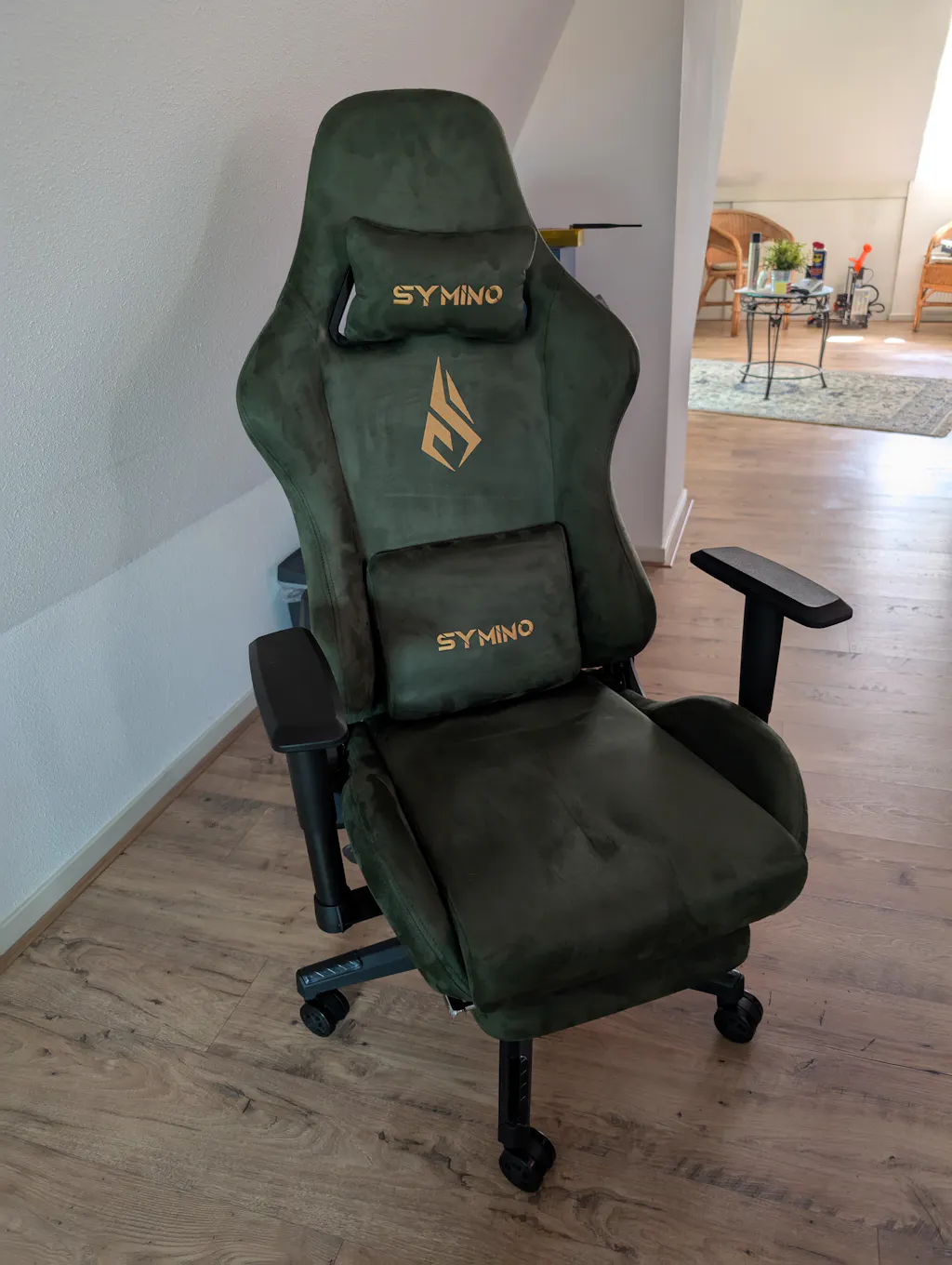 SYMINO Breathable Gaming Chair with Footrest, Adjustable and Rotating, Green