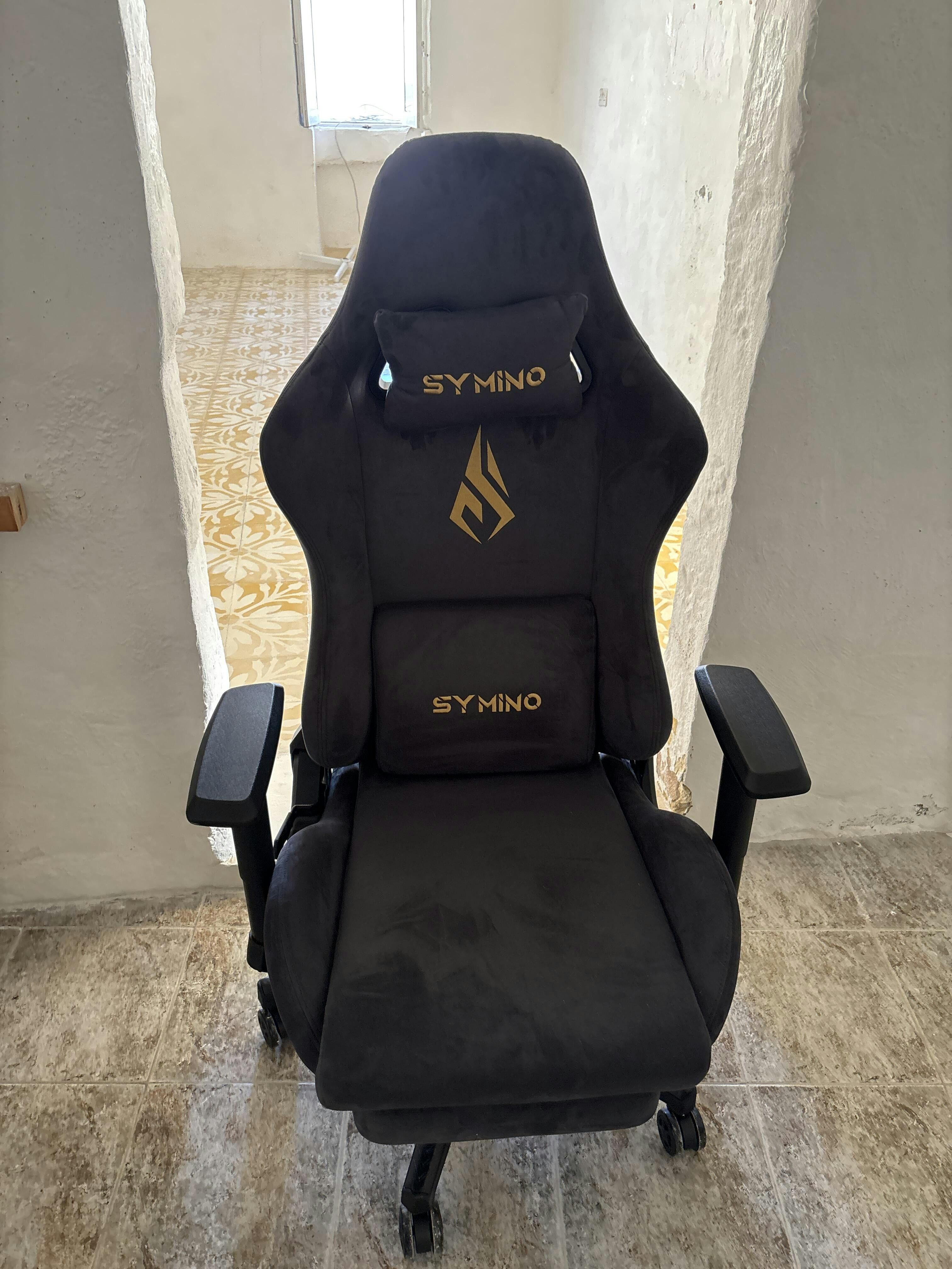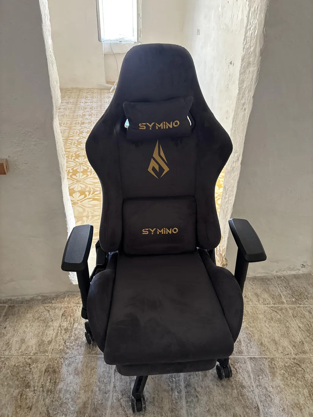 SYMINO Breathable Gaming Chair with Footrest, Adjustable and Rotating, Grey
